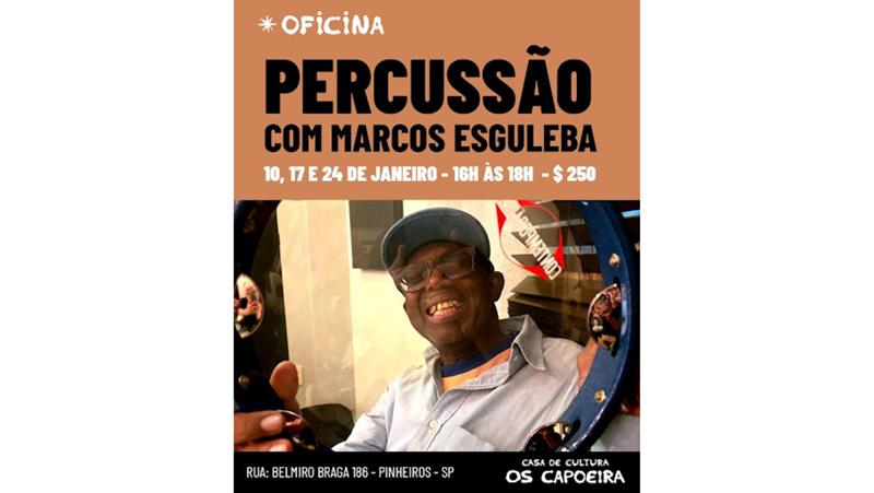 2025 já começa um convite especial para músicos e amantes da percussão! A Casa de Cultura Os Capoeira, localizada na Vila Madalena, em São Paulo, convida o público para participar de uma oficina exclusiva com Marcos Esguleba, um dos percussionistas mais renomados do Brasil. O curso será dividido em três encontros nos dias 10, 17 e 24 de janeiro, das 16h às 18h, proporcionando aos participantes a chance de aprender com um verdadeiro mestre da música brasileira. Confira mais informações aqui.